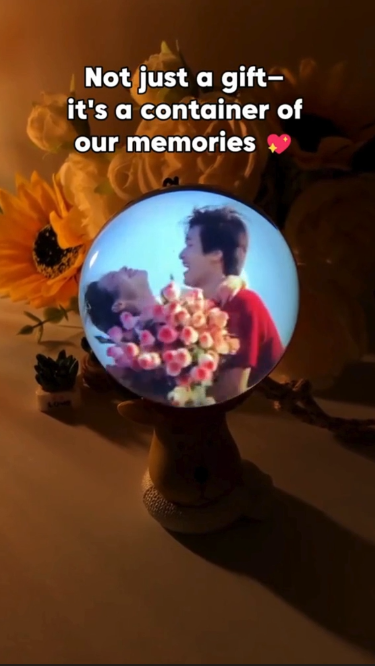 Each ornament softly glows while displaying vivid 3D images and videos inside its glass-like sphere, creating a warm, cinematic experience you can see and feel.